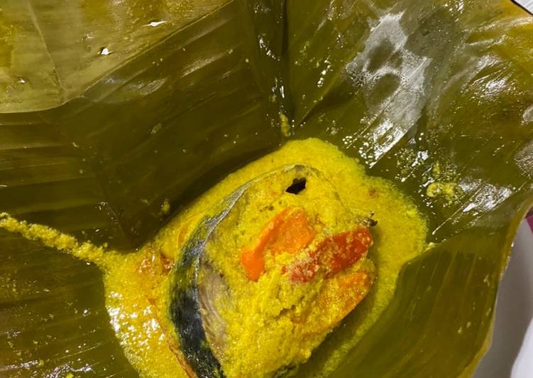 - Ikan direndam dg tamarin dan garam. Sambil nunggu haluskan bumbu halus dg blender. Siapkan baskon dan masukin ikan, sereh yg sudah ditumbuk, belahan tomat, cabe utuh dan bumbu halus. Siapkan daun pisang, tata dan fixir. Siapkan dandang dan steam 30 min. Angkat makan dg nasi panas. Endulita.