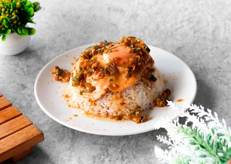 - Tambahkan campuran air kaldu ke dalam wajan. Siram telur dengan air kaldu hingga matang dan sajikan.