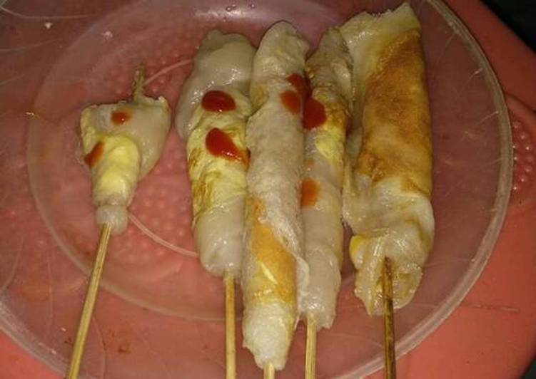 - Panaskan teplon, masukkan telur secara acak lalu tambahkan 1 sendok sayur adonan tepung tadi tipis2 saja..