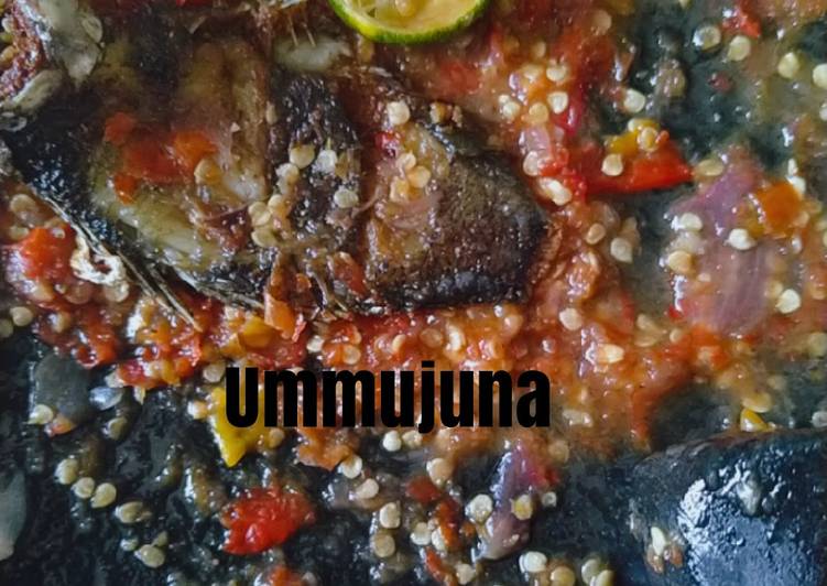 - Ulek bersama lombok, tambahkan gulgar dan penyedap.