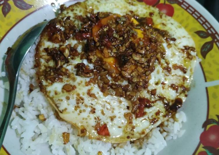 Di tempat ini, ada beberapa menu kayak nasi goreng dan kwetiau, tapi yang jadi andalan adalah nasi telur ceplok. Ramai pesan layanan masyarakat menyuarakan agar tidak menimbun bahan makanan. Salah satunya dengan menyuarakan bahwa mengkonsumsi nasi dan telur saja sudah cukup untuk bertahan hidup dalam masa self quarantine ini. You can have Nasi ceplok telor pontianak yg legendaris using 5 ingredients and 2 steps. Here is how you cook it.